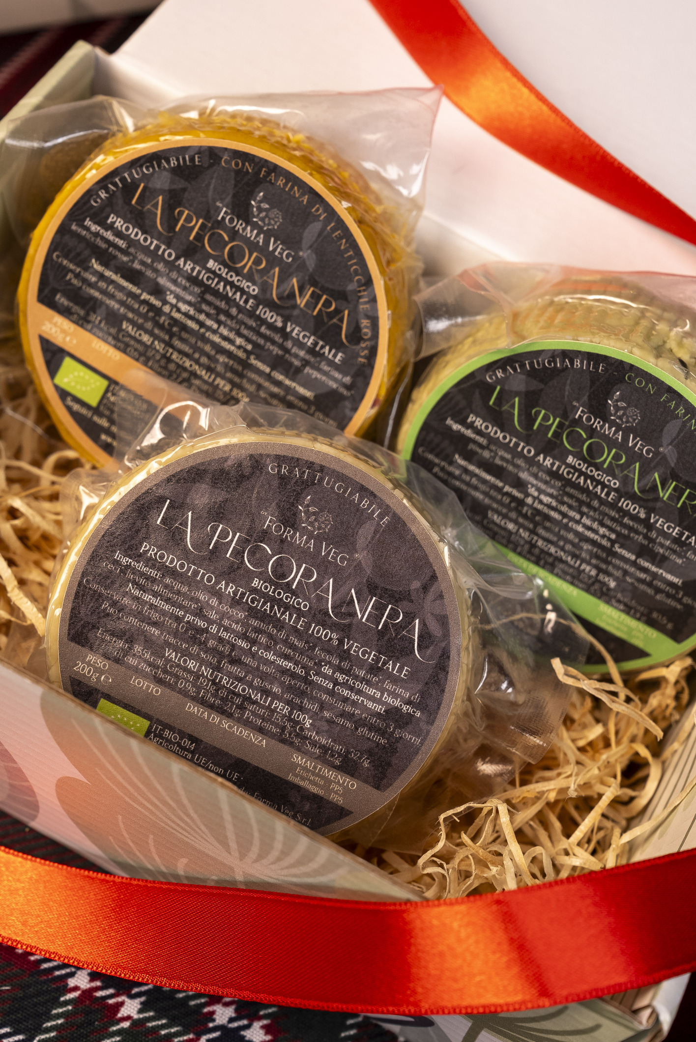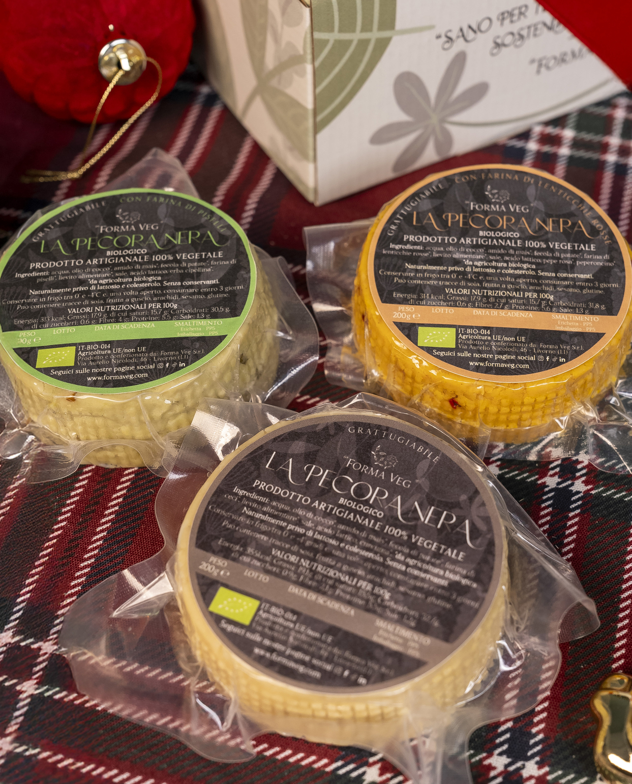 Porta in tavola il gusto unico di Forma Veg con questa confezione speciale, perfetta per arricchire i tuoi piatti delle feste. La Confezione 3 Pecora Nera include le tre versioni della nostra amata forma grattugiabile, per un’esperienza culinaria vegan che stupirà tutti: