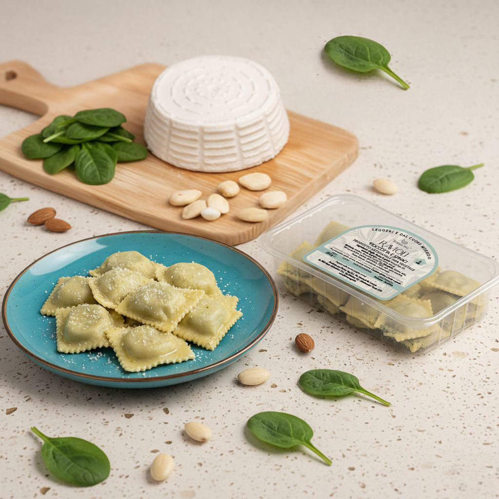 🥟🌱 La sfoglia sottile e dorata racchiude un cuore cremoso di Fioccotta di mandorle 100% italiane e spinaci freschi, per un piatto che unisce gusto, leggerezza e valori nutrizionali equilibrati.